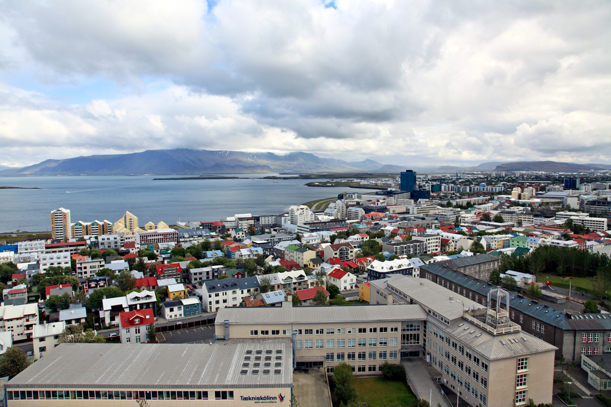 Der Weg führte schön am Ufer entlang – mit Aussichten auf den Hausberg „Edja“, der aber leider in vielen dicken Wolken hing. In der Innenstadt selbst war es noch recht ausgestorben – kein Wunder an einem Sonntagmorgen. Die Isländer sind ja für Ihre ausschweifenden Partys berüchtigt.