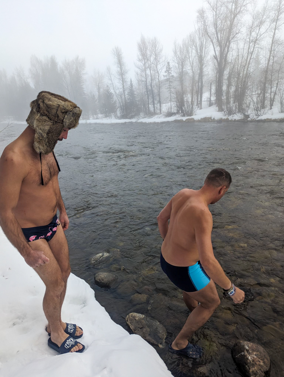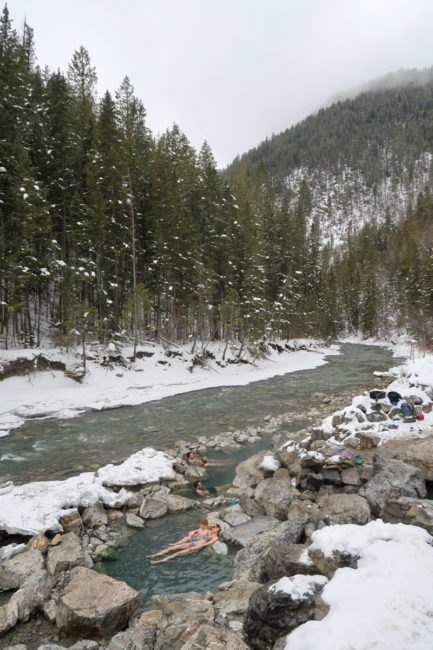 So packten wir nach dem Frühstück unsere Sachen und beluden das Auto. Statt Skifahren wollten wir auf dem Weg nach Fernie zu den Lussier Hot Springs fahren. Das sind heiße Quellen direkt neben einem kalten Fluss.