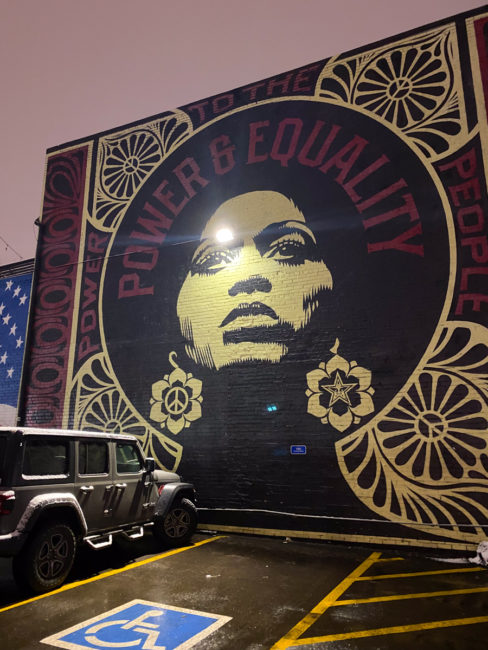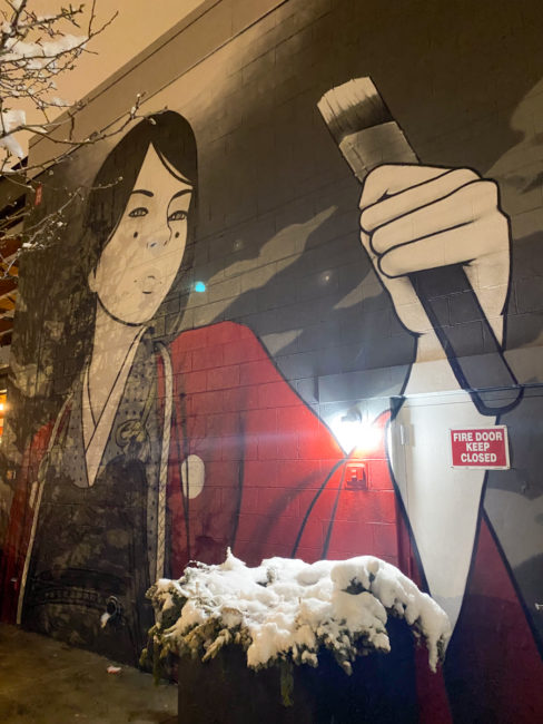 Wir liefen erst mal etwas durch die Gegend und bewunderten die zahlreichen Graffitis. Dann gingen wir zum Mexikaner und bekamen noch kurzer Zeit auch einen Tisch zu viert – der letzte Stuhl wurde von draußen reingeholt und so musste erst mal das Eis runter gekratzt werden…. Wir hatten Nachos mit einer leckeren Sauce als Vorspeise und dann hatten wir Quesadillas zum Teilen. Ansonsten hatten die anderen jeweils 3 verschiedene Tacos, ich hatte eine Enchilada. Und dazu gab es leckere Magaritas, bei der zweiten Runde nahmen wir den Pitcher.