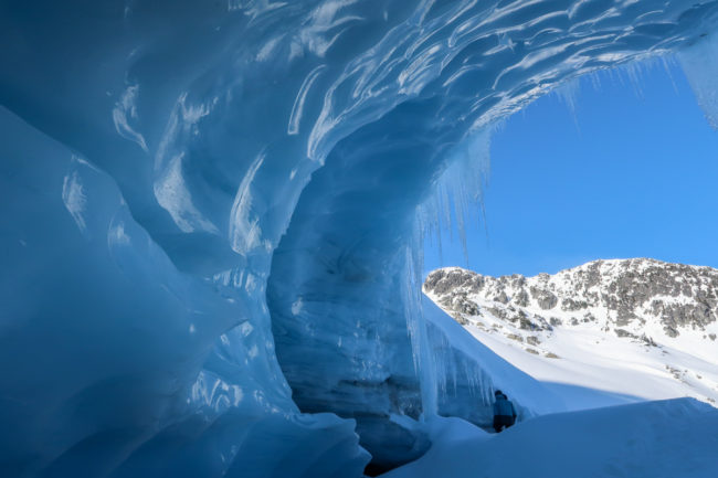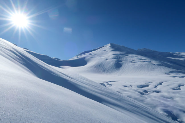 So hatten wir bereits vor dem Lunch 7 Runs – es war ein Traum. Zum Lunch gab es Wraps, Suppe, Cookies und Kaffee. Und das windgeschützt und im strahlenden Sonnenschein….Nach dem Essen hatten wir dann „nur“ noch 2 Runs – diese waren aber noch mal in einem komplett anderen Bereich und sie waren recht lang. Beim ersten wurden wir erneut fast vom Gipfel gepustet, beim zweiten gab es als Höhepunkt eine große Gletscherhöhle zu sehen…..Und nach dem neunten Run ging es dann leider wieder runter vom Berg. So ein oder zwei Runs hätten wir noch sehr gerne mitgenommen….