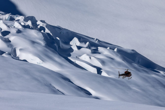 So ging es ein gutes Stück mit dem Heli weiter und der zweite Run war traumhaft schön und führte am Ende durch den Pulverschnee zwischen den Tannen hindurch….Jeder Run wurde besser, beim vierten fuhren wir über einen Gletscher ab – dies machten sie in dieser Saison zum ersten Mal….Und ich räumte kurz vor dem Ende noch mal Timo ab….