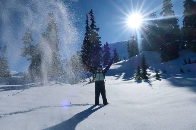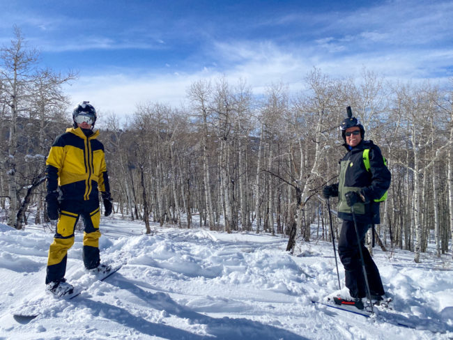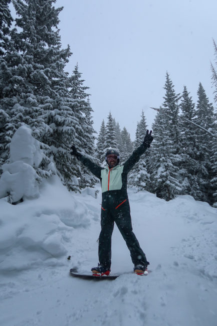Danach fuhren wir den kompletten Nachmittag weiter und wechselten auf den anderen Berg. Bei der Fahrt durch die Aspen lag erst Timo im Tiefschnee, mich erwischte es dann einen Moment später. Es war alles andere als einfach da wieder rauszukommen….