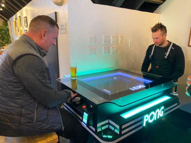 Gegen 13 Uhr kehrten wir dann noch einmal in die Outer Range Brewery ein und nahmen uns ein Hähnchen und eine Tuna-Bowl als Mittagessen. Dazu hatten wir dann noch ein Abschluss-Bier. Die eine Soße zum Hähnchen war höllisch scharf. Danach spielten wir wieder Pong und entdeckten Pac-Man zu viert für uns. Das war auf jeden Fall ein traumhafter Abschluss der Zeit in Silverthorne.