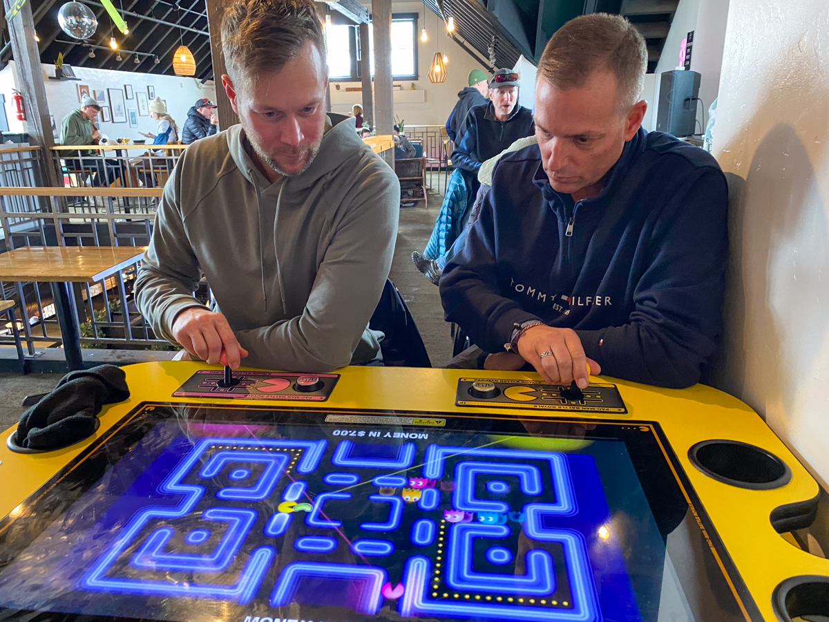 Auf dem Rückweg fuhren wir dann noch in eine Brauerei in Frisco und hatten dort zwei leckere Bierchen, einen Snack mit Hühnchen und spielten eine Runde an einem Atari. Ein sehr schöner Ort für einen entspannten Drink nach dem Skifahren….
