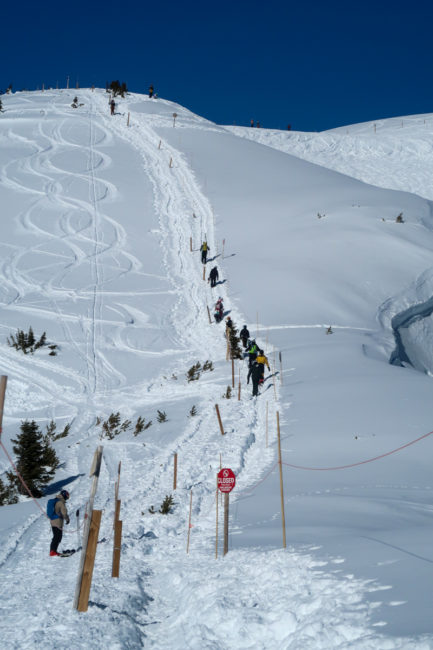 Gegen Mittag fuhren wir in Richtung Timber Bowl und der Lift lief tatsächlich – vorerst allerdings nur mit Skipatrol. Nach der nächsten Abfahrt war der Lift dann aber tatsächlich geöffnet – vorher war das nur an 8 oder 9 Tagen in dieser Saison der Fall.